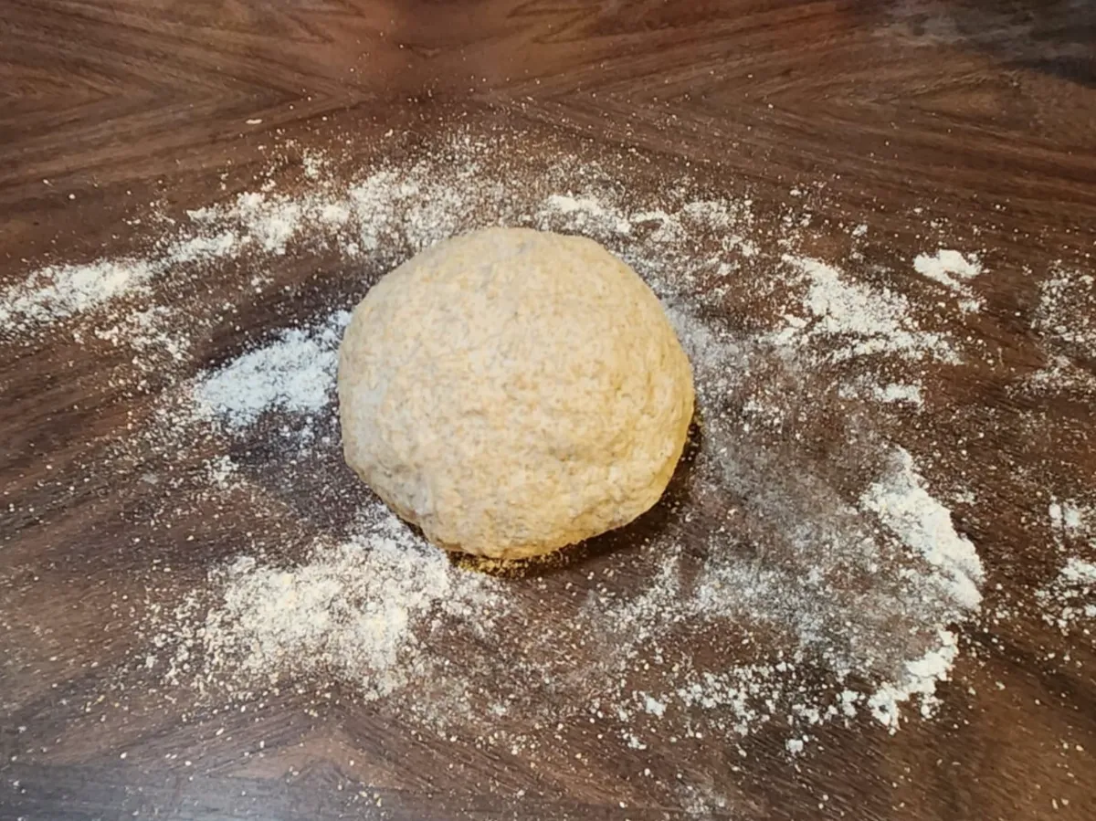 3.小麦粉を薄くふった台(まな板やキッチンの作業台など)の上に生地を出して、弾力が出てなめらかになるまで、よくこねます。この時、生地が固ければ水を足し、柔らかすぎれば小麦粉を追加して下さい。