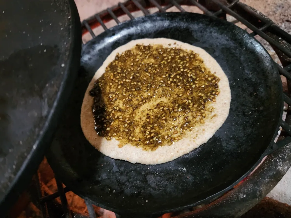 今ではチーズや肉など様々なトッピングのものが食べられていますが、乾燥させたタイムやオレガノをベースに胡麻やスマックなどを混ぜ合わせたザータルスパイスをまぶしたマナキーシュが、身の周りの材料で簡単に作ることができ、かつ安価で栄養価も高いため、昔から特に人々から愛されてきました。