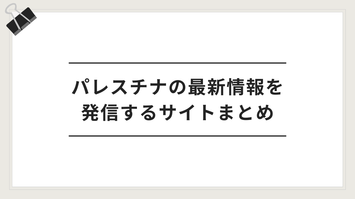 パレスチナの最新情報を発信するサイトまとめ 2025 8/26 パレスチナの最新情報 2025-08-26 パレスチナの最新情報 よかったらシェアしてね! URLをコピーしました! URLをコピーしました! 署名 世界につづけ、パレスチナ国家承認 関連記事 世界につづけ、パレスチナ国家承認